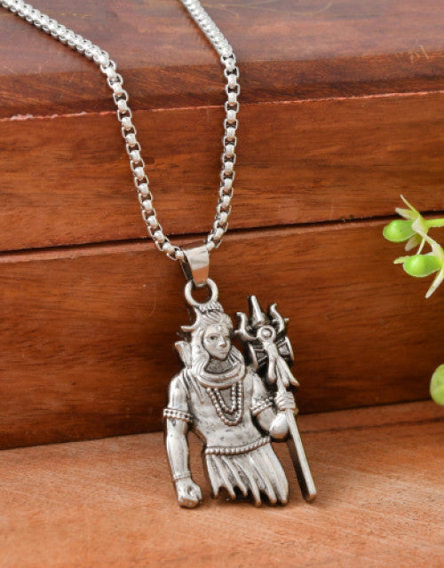 Lord Shiva Pendant for Men and Women, Shiv Trishul Pendant for Boy and Girl Silver Stainless Steel Locket
