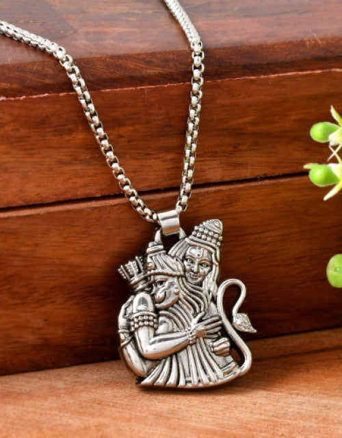 Silver Plated Lord Hanuman Gada Shri Ram word in Hindi Pendant Locket Men