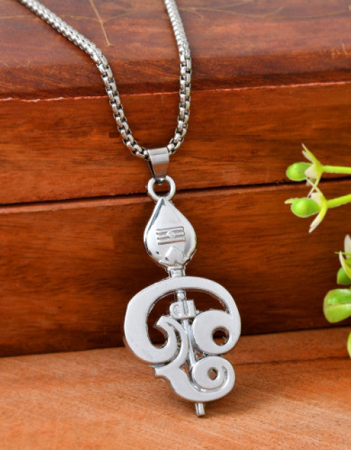 Lord Murugan Subrahmanya Tamil Om Locket Silver Stainless Steel Pendant