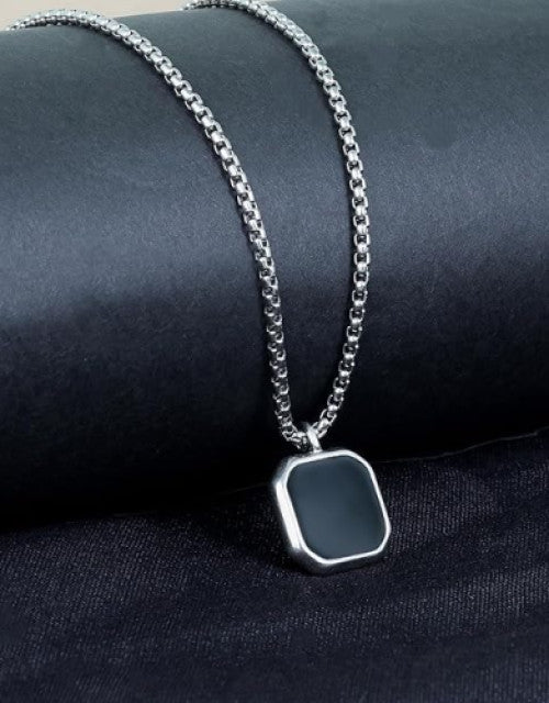 Stick Stainless Steel Black Silver Locket Pendant Necklace Chain For Boys and Men Unisex