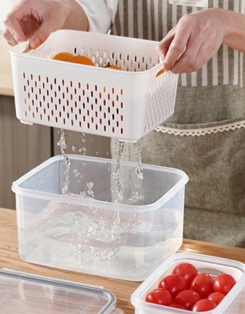 Storage Box Refrigerator Storage Box Vegetable And Fruit Box Drain Basket ( Pack Of 3 )