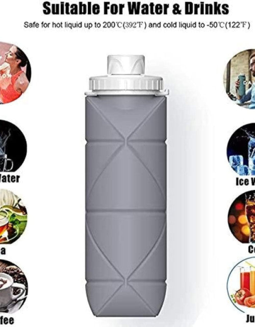 Collapsible Sports Water Bottles Leakproof Valve BPA Free Silicone Foldable Water Bottle