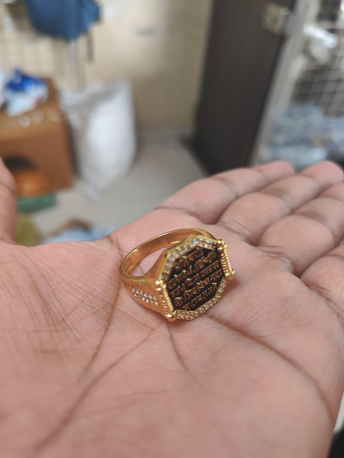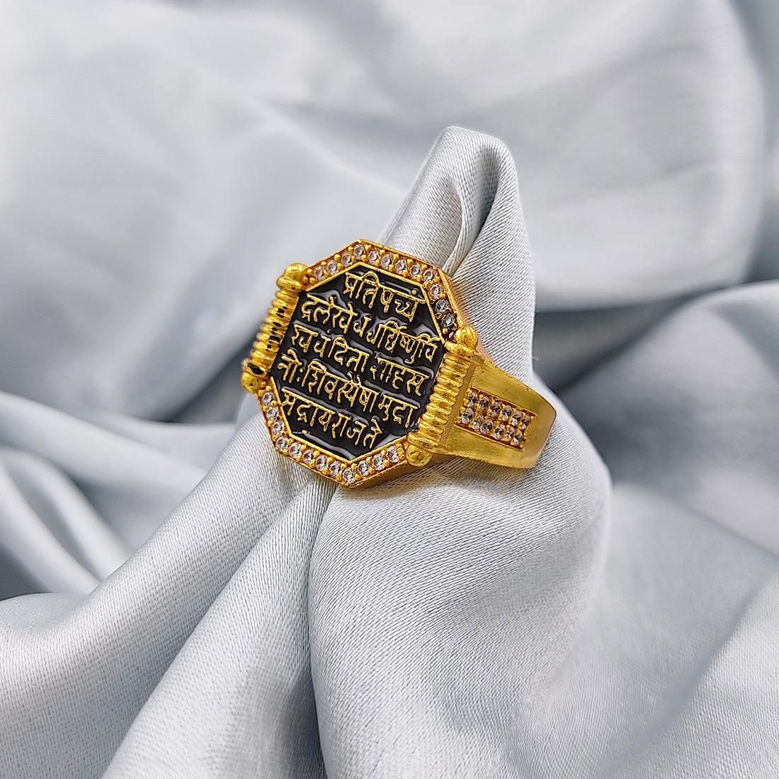 Product Name : Gold Plated Raj Mudra Finger Ring for men and Boys Stainless Steel Ring (Black)